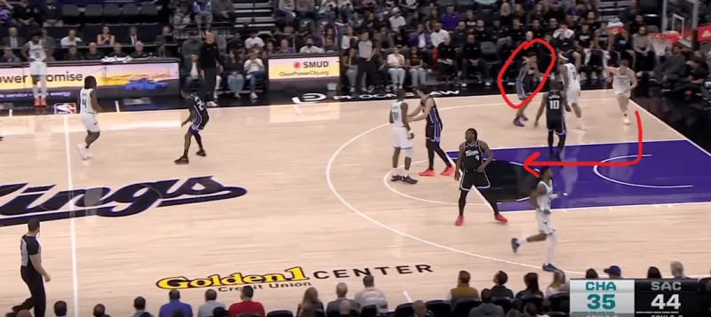 布里奇斯直接出球兜出的克尼普尔,后者利用雷诺未能提上刷卡防守的空当完成出手: