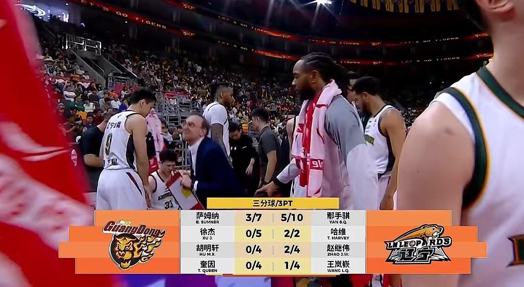 次节开局广东攻势有所好转,焦泊乔、麦考尔开局再造4罚,萨姆纳抢断反击制造2+1,两回得到5分帮助广东打出一波9-4将分差缩小到10分。